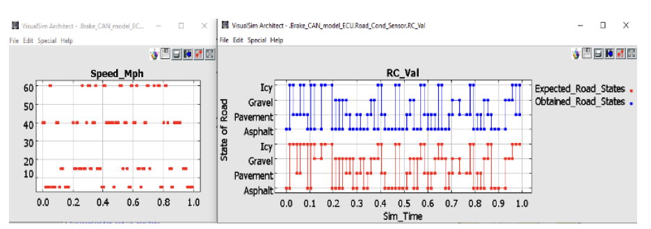 The task must be performed locally by each Brake – Sensor processing and then the ECU for vehicle control. The action engine in Fig. 15 represents the output from the ECU to the appropriate engine block. The output from the ECU after the processing is sent to different wheels and engine as shown below in Fig. 16. The map represents the local access to the database block as shown in Fig. 15. Note that a road condition sensor is used to detect the anomaly on the surface of the road, which represents the failure under the safety of the integrated functionality (SOTIF).