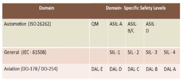 Automotive Safety Integrity Level (ASIL) is a risk classification scheme defined by the ISO 26262 – Functional Safety for Road Vehicles standard. This is an adaptation of the Safety Integrity Level used in IEC 61508 for the automotive industry. This classification helps defining the safety requirements necessary to be in line with the ISO 26262 standard. The ASIL is established by performing a risk analysis of a potential hazard by looking at the Severity, Exposure and Controllability of the vehicle operating scenario. The safety goal for that hazard in turn carries the ASIL requirements. There are four ASILs identified by the standard: ASIL A, ASIL B, ASIL C, ASIL D. ASIL D dictates the highest integrity requirements on the product and ASIL A is the lowest. Hazards that are identified as QM do not dictate any safety requirements.