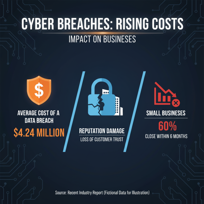 Cybersecurity breaches are becoming increasingly common and costly for businesses. A recent report found that the average cost of a data breach is approximately $4.24 million. This figure highlights the significant impact that security incidents can have on organizations of all sizes. Not only do breaches lead to financial losses, but they also damage a company's reputation. Studies reveal that 60% of small businesses close within six months of a cyber incident.