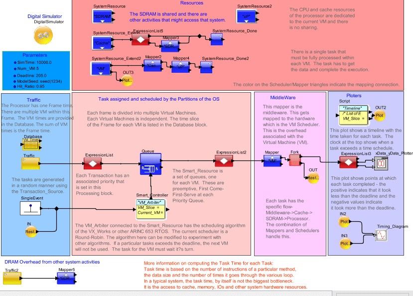 VisualSim ARINC 653 is a system simulation library that contains the model of the real-time operating system (RTOS), components to emulate the software tasks, hardware components and analysis tools. The models can be used for timing analysis, power consumption and functional correctness. Each application software/task is called a partition and has its own memory space. It also has a dedicated time slot allocated. Within each Partition multitasking is allowed. The API provides services to manage partitions, processes and timing, as well as partition/process communication and error handling.
