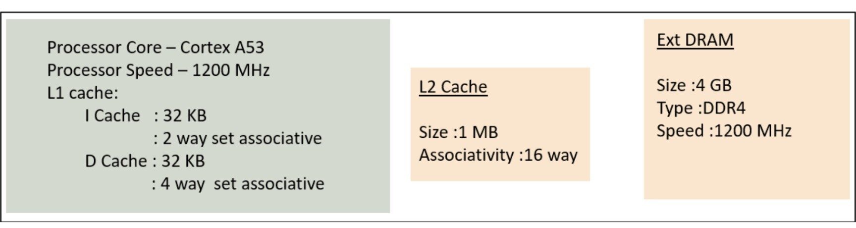 The Cortex-A53 processor is a mid-range, low-power processor that implements the Armv8-A architecture. It has 2 levels of cache and AMBA 4 Memory interface [1]. The Cortex A53 block diagram is shown below in Fig 3.