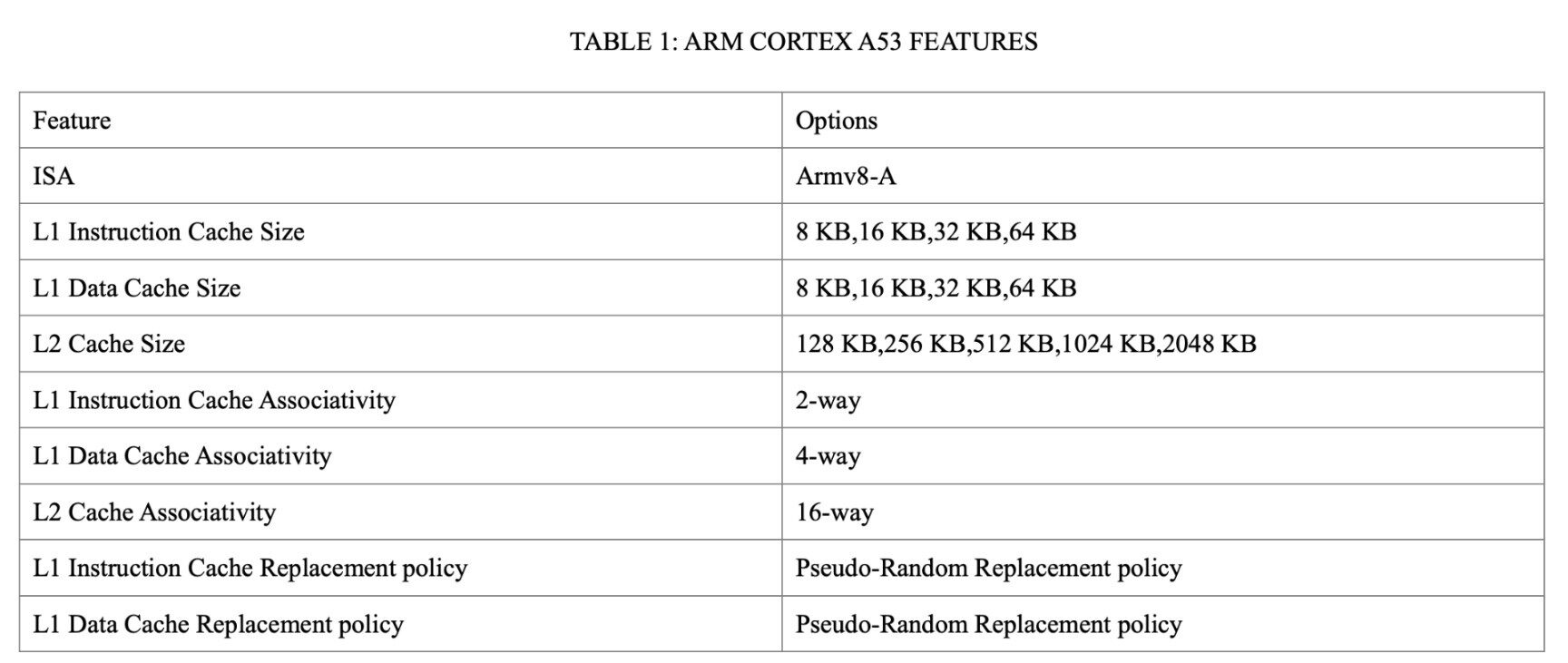 The features of the A53 core [1] is listed out in the following table, Table 1.