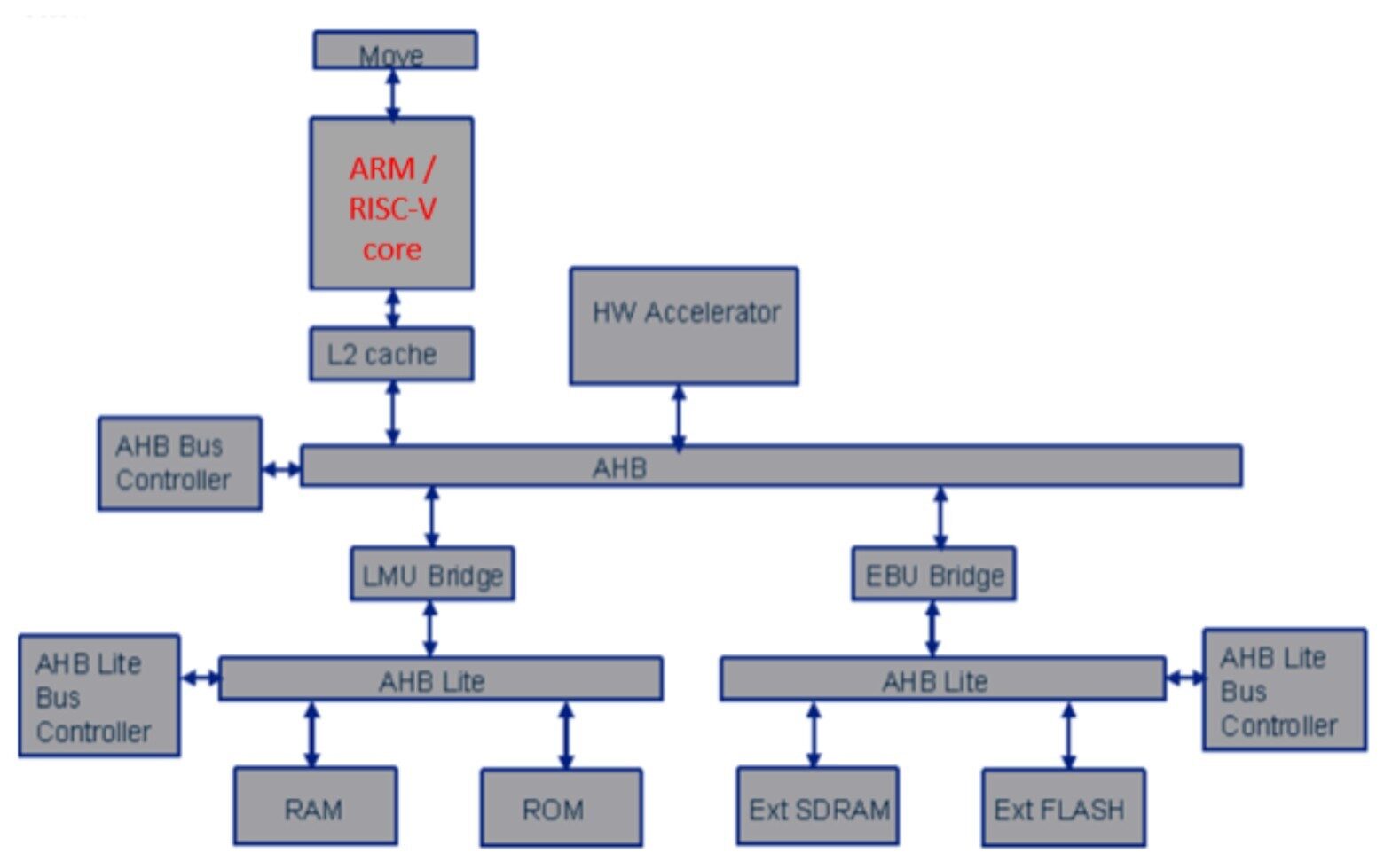 Now that the system model has been validated for both ARM and RISC-V core, we plugged the system model into a desired SoC design and ran application sequences on it. The performance and power obtained when using an ARM core vs RISC-V core were compared. We selected a multimedia application to be run, and the results from it to be compared against each other. The block diagram of the System on Chip (SoC) for the application to be run on is shown below in Fig. 16.