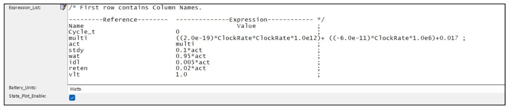 Fig. 14 shows that the power value per state is not a static value but rather they are computed dynamically. Each of the variable linked in Fig. 14 are calculated during runtime and the results are plotted. The calculations made for each variable are shown below in Fig. 15.