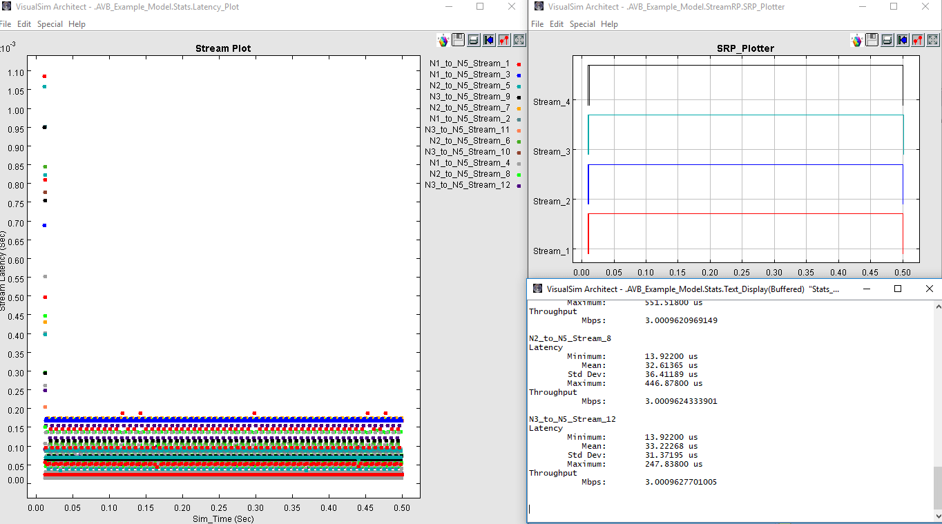 This Ethernet AVB library is fully integrated with the VisualSim automotive network library and the VisualSim hardware architecture library to model, simulate and design complete systems. In addition to the Ethernet and AVB network, the system can contain other networks such as CAN and FlexRay, sensors, ECU, hardware accelerators, display units, video processors, and audio equipment.