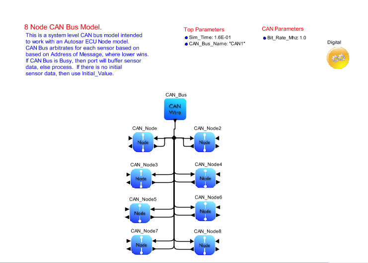 VisualSim CAN library is a modelling and simulation library for the topology design and power optimization of CAN-based automotive and industrial system.