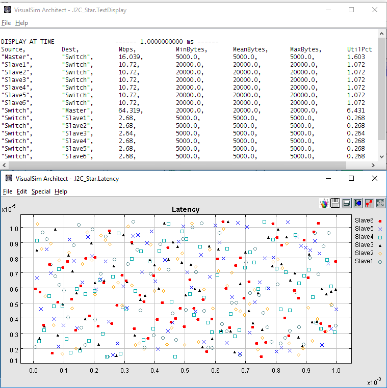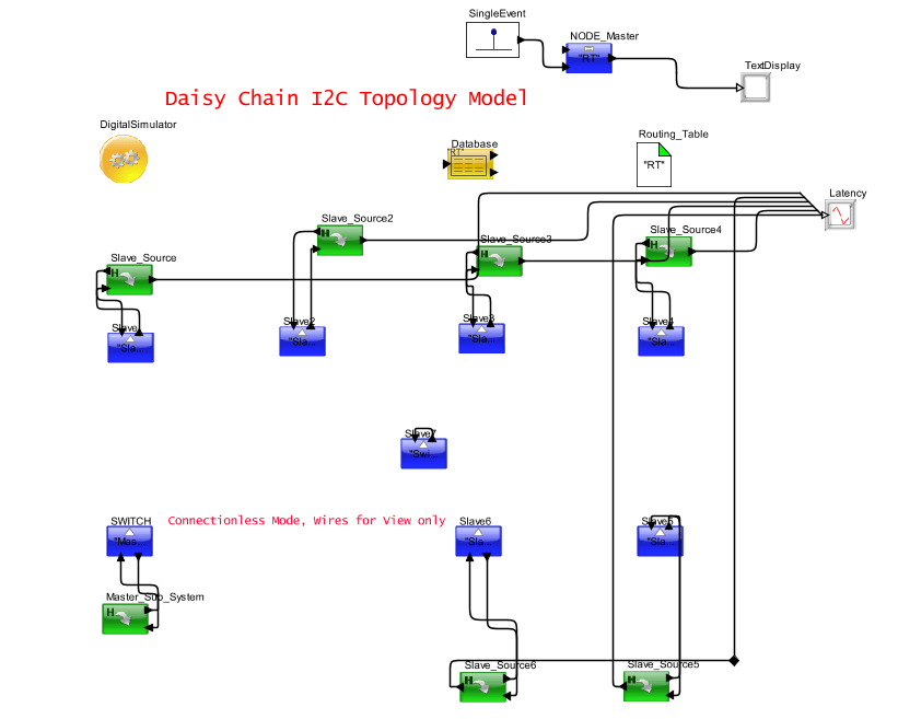 Using VisualSim I2C library, user can architect the “right” product, i.e. one which minimizes product failures and has not been over- or under- designed. The I2C library is generated by Serial Data Line-bidirectional line, which receives I2C pattern and transmits acknowledgement when communication was successful and Serial Clock Line-one directional line. VisualSim I2C library allows multiple slave devices to be connected to a single I2C bus, each of them is identified with a different address. To address the slave device, seven bits are used.