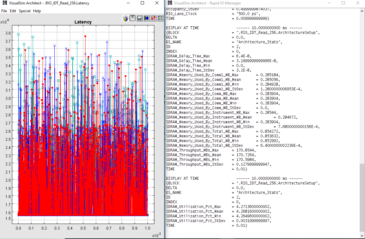 - Complete systems using RIO network can be constructed with other VisualSim libraries such as processors from TI and Freescale, memories, storage devices, buses such as PCI, PCIe, networking devices such as Ethernet and Fiber Channel, statistical traffic generators and FPGA boards.