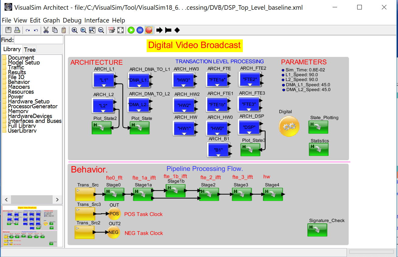 The equivalent blocks on the behavior side that work with the System Resources are the mappers. The Mapper (Behavior-side) makes the request to the System Resource_Extended and System_Resource (architecture-side). The System Resource blocks, perform a variety of scheduling algorithms, including First-Come-First-Serve, First-Come-First-Serve plus preemption, Round Robin, and User defined schedulers. In addition, the SystemResource Block can be arranged as a hierarchical set of entities. The SystemResource_Extended Block supports detailed external modeling of the task execution with both blocking and non-blocking options. System Resource execution receives the delay and priority from the transmitting Mapper block in the behavior flow, and can be a delay value or number of cycles.